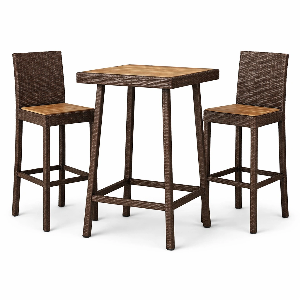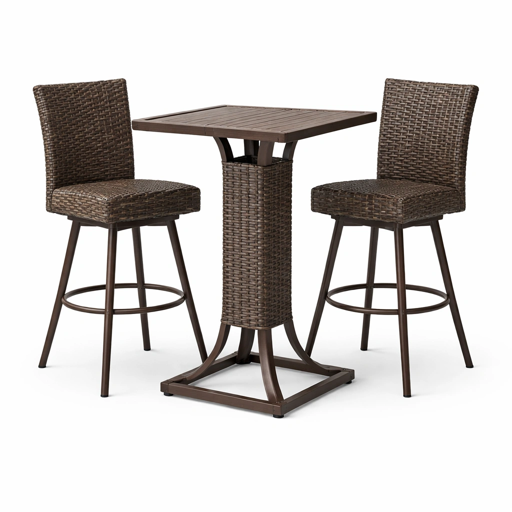 Juego de bar de aluminio y ratán con 2 sillas giratorias
