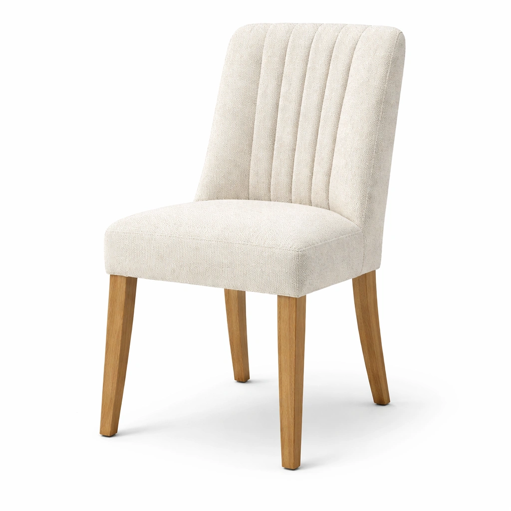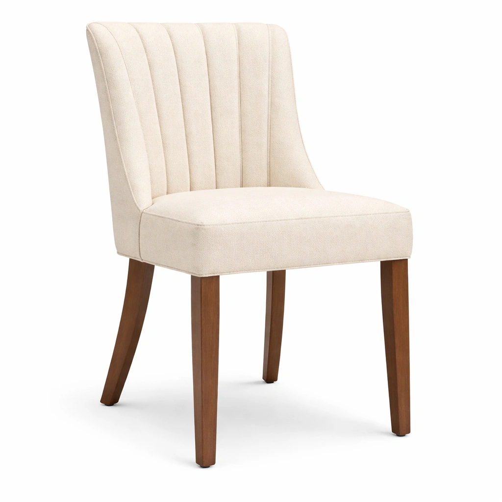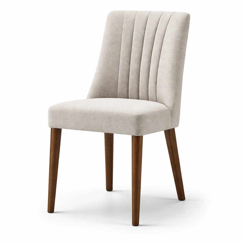 Sillas de comedor tapizadas de poliéster beige con patas de roble